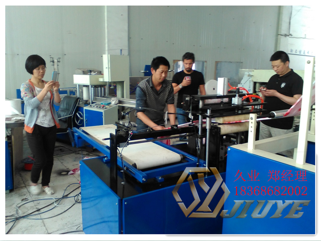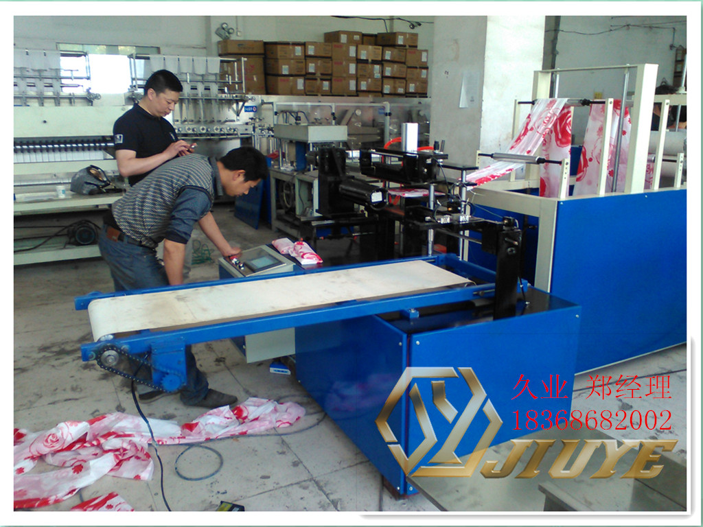 1.設備可生產各種塑料材質的浴簾(如PE、PVC、EVA等)。 2.設備的工作原理:上料→同步輸送→自動糾偏→自動上輔條→同步打孔→自動切邊→自動折疊→計數停機→切割→直接成品。 3.設備配備同步輸送裝置及二套齒輪式無極變速調節漲力裝置,以確保生產的浴簾成品尺寸精確。 4.設備配備超聲波裝置,可同步完成上輔料、打孔、修邊動作,也可增配PLC程序編程控制,使打孔節距更均勻,外觀更完美。 5.設備配不銹鋼鋼板一塊,自動折疊,調節方便,輕快平穩。 6.設備配滾輪收卷,收卷整齊不跑偏。 7.設備配收定點切斷,使生產的產品更美觀。 8.設備配有紅外線自動計數裝置及自動停機功能,計數到數停機,計數精確。 9.設備的牽引裝置均配有自動氣動抬起裝置,穿料方便,操作更人性化。整機臺面及對產品易造成衛生影響的部件全采用304不銹鋼材料制作。 10.設備采用變頻控制調速,電器部位布線規范合理、美觀、大方、操作方便。 11.本機全部操作過程僅需一人完成。