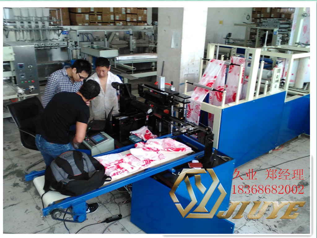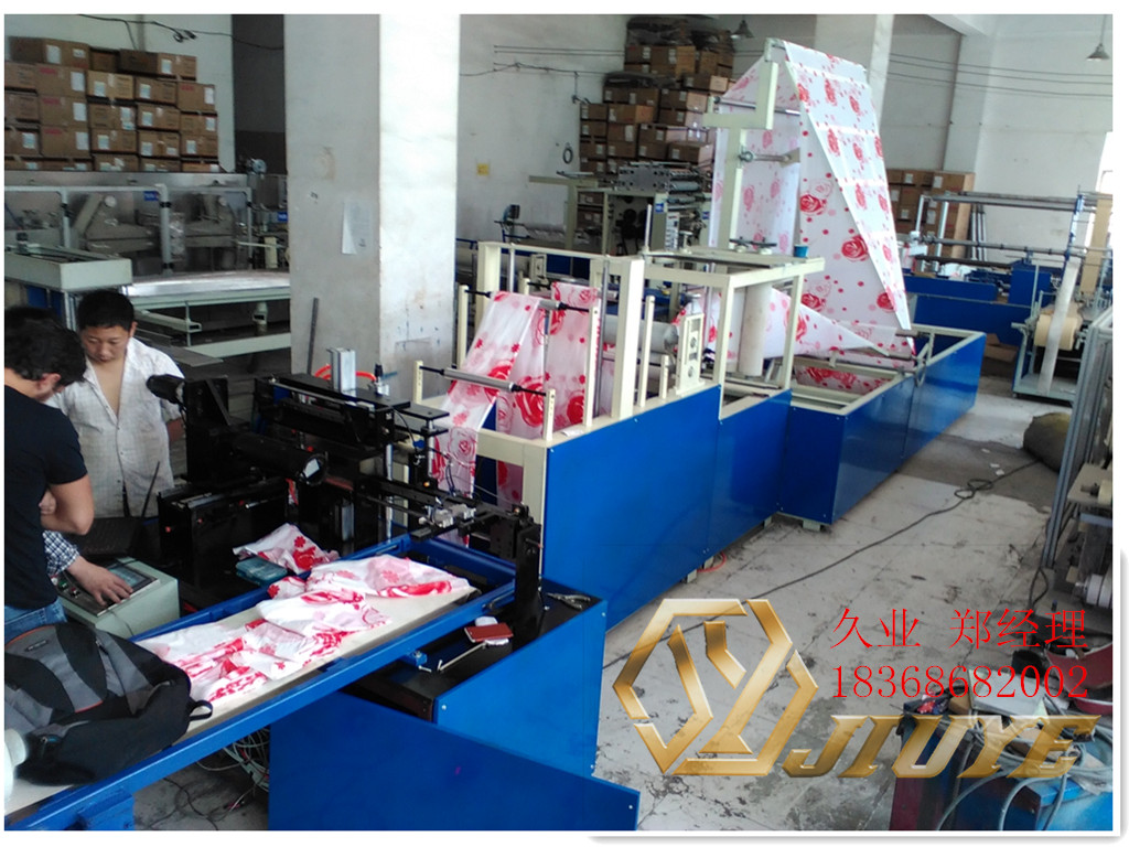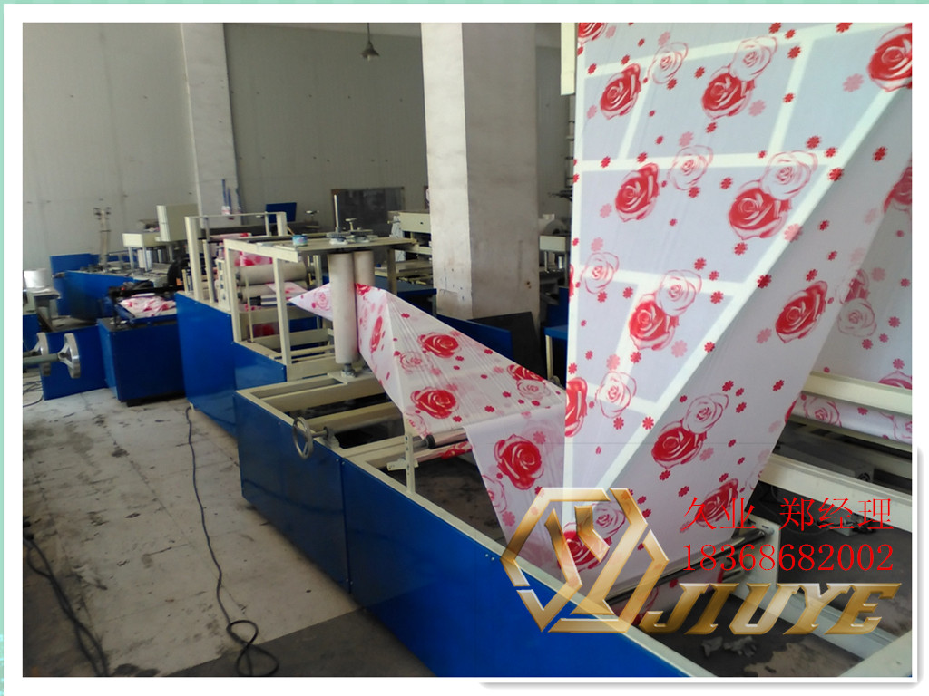 1.設備可生產各種塑料材質的浴簾(如PE、PVC、EVA等)。 2.設備的工作原理:上料→同步輸送→自動糾偏→自動上輔條→同步打孔→自動切邊→自動折疊→計數停機→切割→直接成品。 3.設備配備同步輸送裝置及二套齒輪式無極變速調節漲力裝置,以確保生產的浴簾成品尺寸精確。 4.設備配備超聲波裝置,可同步完成上輔料、打孔、修邊動作,也可增配PLC程序編程控制,使打孔節距更均勻,外觀更完美。 5.設備配不銹鋼鋼板一塊,自動折疊,調節方便,輕快平穩。 6.設備配滾輪收卷,收卷整齊不跑偏。 7.設備配收定點切斷,使生產的產品更美觀。 8.設備配有紅外線自動計數裝置及自動停機功能,計數到數停機,計數精確。 9.設備的牽引裝置均配有自動氣動抬起裝置,穿料方便,操作更人性化。整機臺面及對產品易造成衛生影響的部件全采用304不銹鋼材料制作。 10.設備采用變頻控制調速,電器部位布線規范合理、美觀、大方、操作方便。 11.本機全部操作過程僅需一人完成。