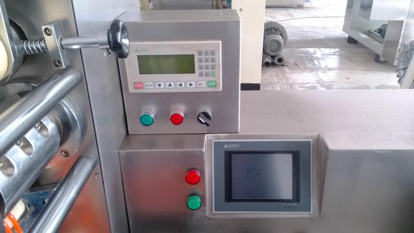 6.設備的縱封和橫封由獨立的PID溫控系統控制,縫合密封性能好不漏水.并配有墨輪式自動打印日期裝置,數字打印清楚.
