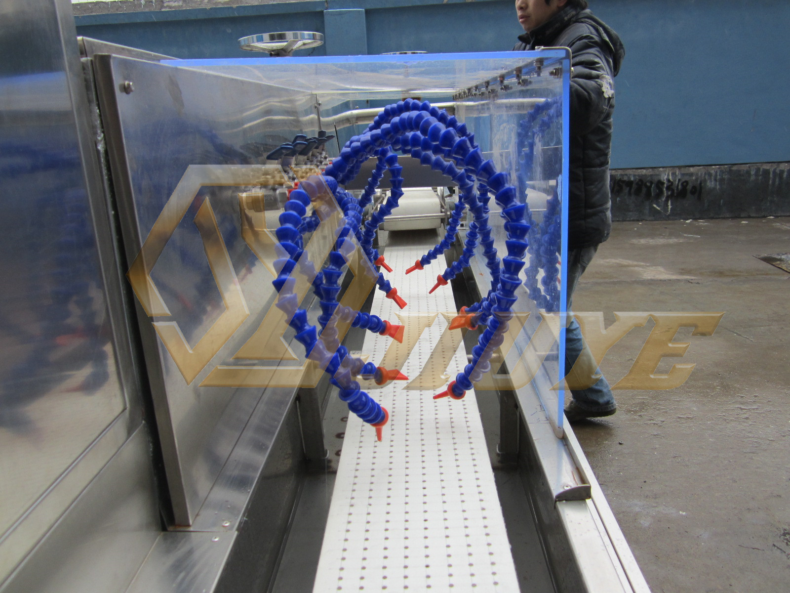2.設備配有10組噴頭,可變換各種噴淋角度和噴淋流量,并可多面同時噴淋.配有移動式有機玻璃罩,防止液體外流.