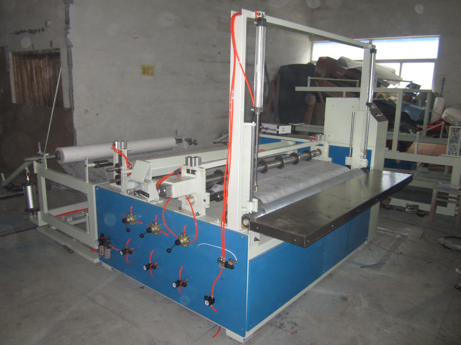4. 設(shè)備上料直徑為1.2米,配放卷和收卷各一根氣漲軸。