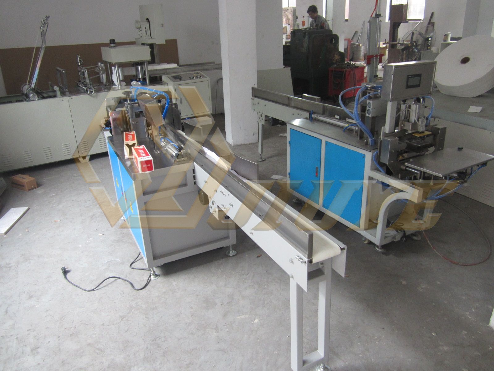 1、功能與特點 適用各種面紙、盒裝抽紙的自動包裝封口。 集電氣一體自動化控制生產、操作輕松簡單。 關鍵工作部件采用不銹鋼材料。 2、主要技術參數 生產速度:50-60盒/分鐘 裝機功率:2.4KW(220V 50HZ) 氣源:0.4 MPa 0.3m3/分鐘 外形尺寸:3000x1000x1500mm (長x寬x高) 機器重量:約600千克